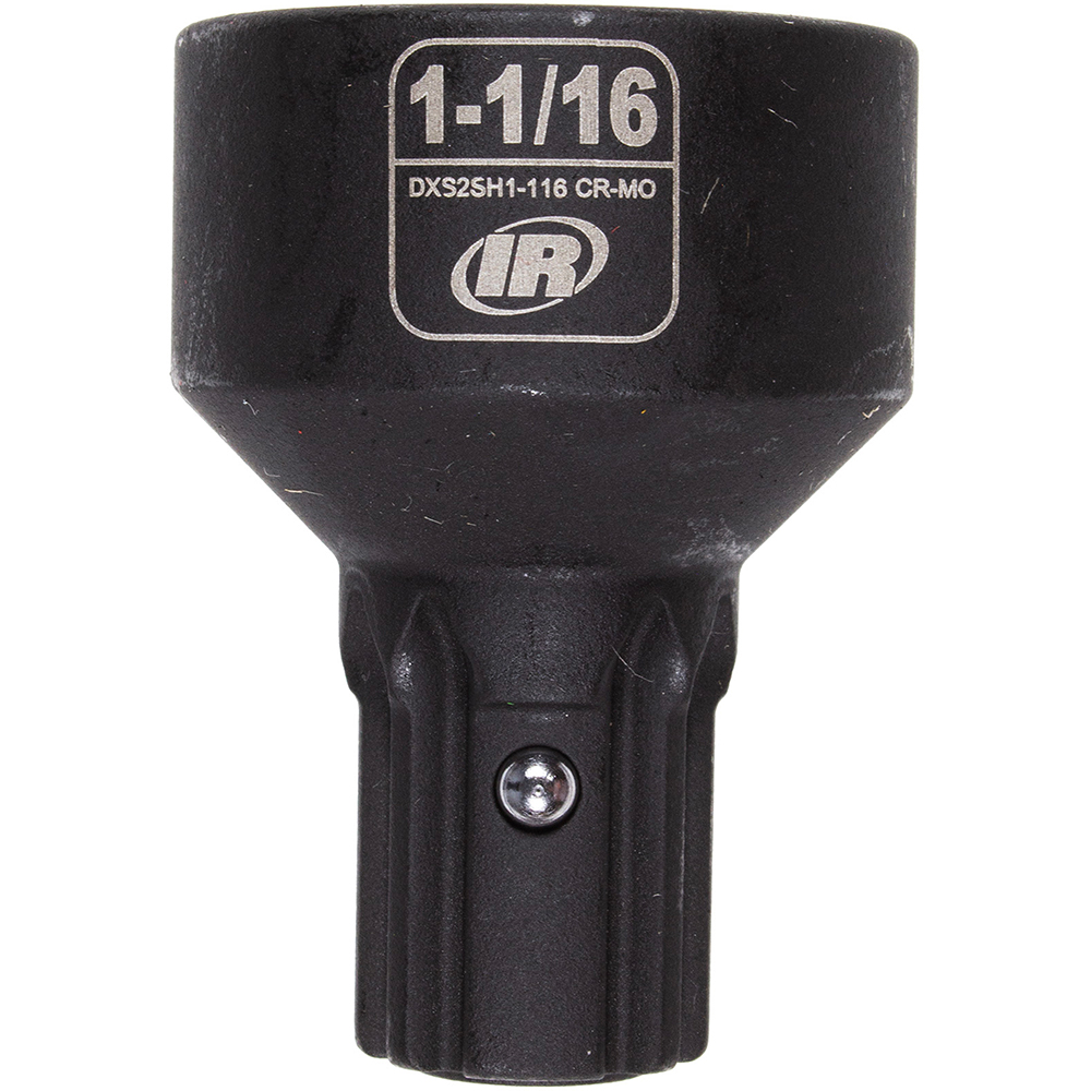 Manufactured from impact-grade CR-MO (chrome-molybdenum) alloy steel and coated with a manganese phosphate finish, these sockets offer exceptional toughness and corrosion resistance. Each socket features relieved 6-point hex corners to reduce fastener rounding, along with laser-etched size markings for high visibility. The ball nose retention pin enables quick, tool-free installation, and a square retention pin conversion kit is available for added compatibility. Backed by a limited lifetime warranty and built to ASME B107.110 standards, the Ingersoll Rand 1” Standard 6-Point DXS2 Socket, DXS2SH1 offers proven reliability.