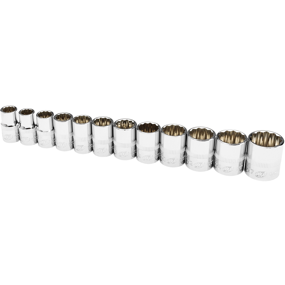 Ingersoll Rand 11PC 1/4” Drive Shallow Socket Set – Metric 6 Point 752043X are constructed of industrial-grade Chrome Vanadium steel that exceeds ANSI standards. Each socket is finished with mirror-polished chrome plating. Ingersoll Rand signature vertical knurling offers better grip and easier handling (especially with greasy hands). The set includes a patent-pending thermoform socket tray that keeps sockets organized and easy to identify by standing sockets on end for 360-degree visibility, while economizing space in the tool box. The Ingersoll Rand 11PC 1/4” Drive Shallow Socket Set – Metric 6 Point 752043X is designed with professional quality and attention to detail, making it a reliable choice for demanding tasks across industries.