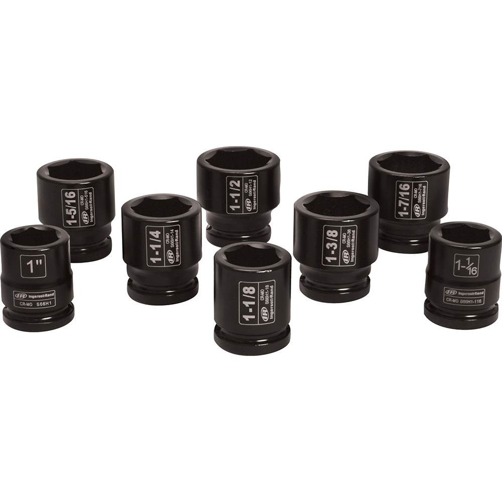 Ingersoll Rand 8PC 3/8” Drive Hex Universal SAE Impact Socket Set, SK3H8N. Warranty: Lifetime Limited Special Features: Impact-grade toughness Chrome-molybdenum steel Drive Size: 3/8” Drive Type: Square Finish: Chrome-molybdenum steel